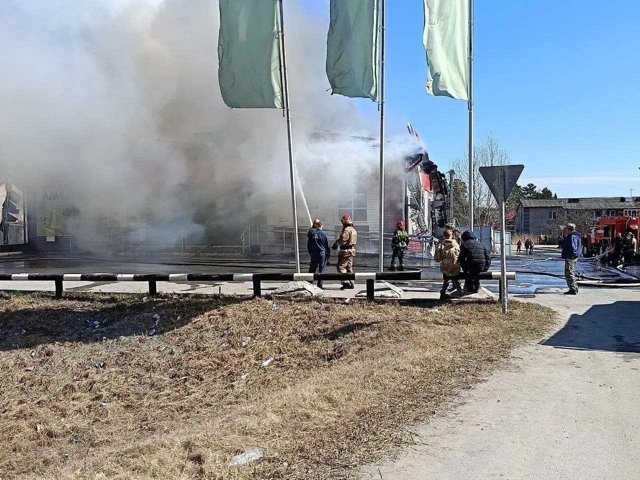 Сегодня, 17 апреля, в Тюнево на Центральной, 95/2 полыхает сетевой магазин.