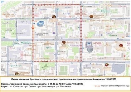 В субботу, 19 апреля, в центральной части Тюмени временно ограничат движение транспорта из-за Крестного хода, приуроченного к празднованию Антипасхи, или Фоминого воскресенья.