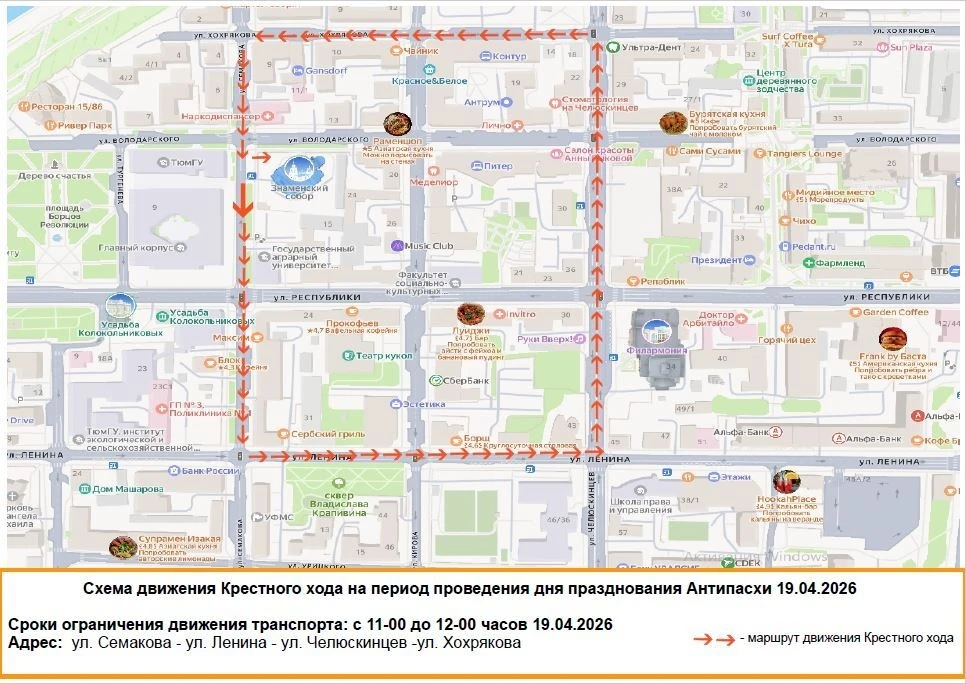 В центре Тюмени ограничат движение 19 апреля из-за Крестного хода