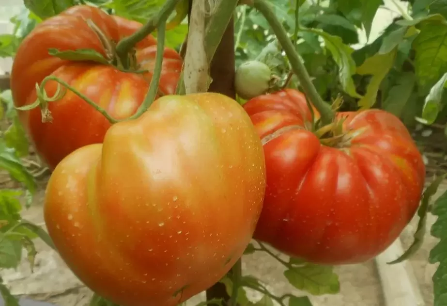 Кусты томатов «Шапка Мономаха» достаточно высокие и требуют подвязки. Рекомендуется их подкормка древесной золой и птичьим пометом, что значительно повышает качество и вкус плодов. Они не только привлекают своим внешним видом, но и радуют необычайно сладким вкусом, с весом отдельных помидоров до 900 грамм.
