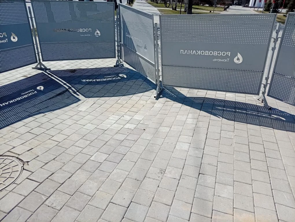 В районе пересечения улиц Мельникайте – Республики рядом с Тюменским технопарком на тротуаре выставлены ограждения. В целях обеспечения безопасности пешеходов компания «Росводоканал Тюмень» обозначила место, где образовался провал брусчатки.