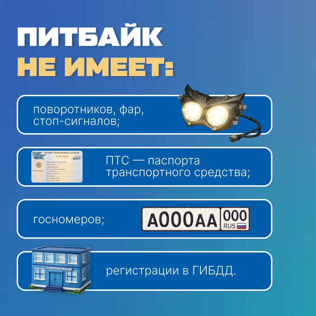 Эксплуатация мини-мотоцикла разрешена исключительно на специализированных треках и закрытых площадках. До трассы питбайк можно довозить только на прицепах.
