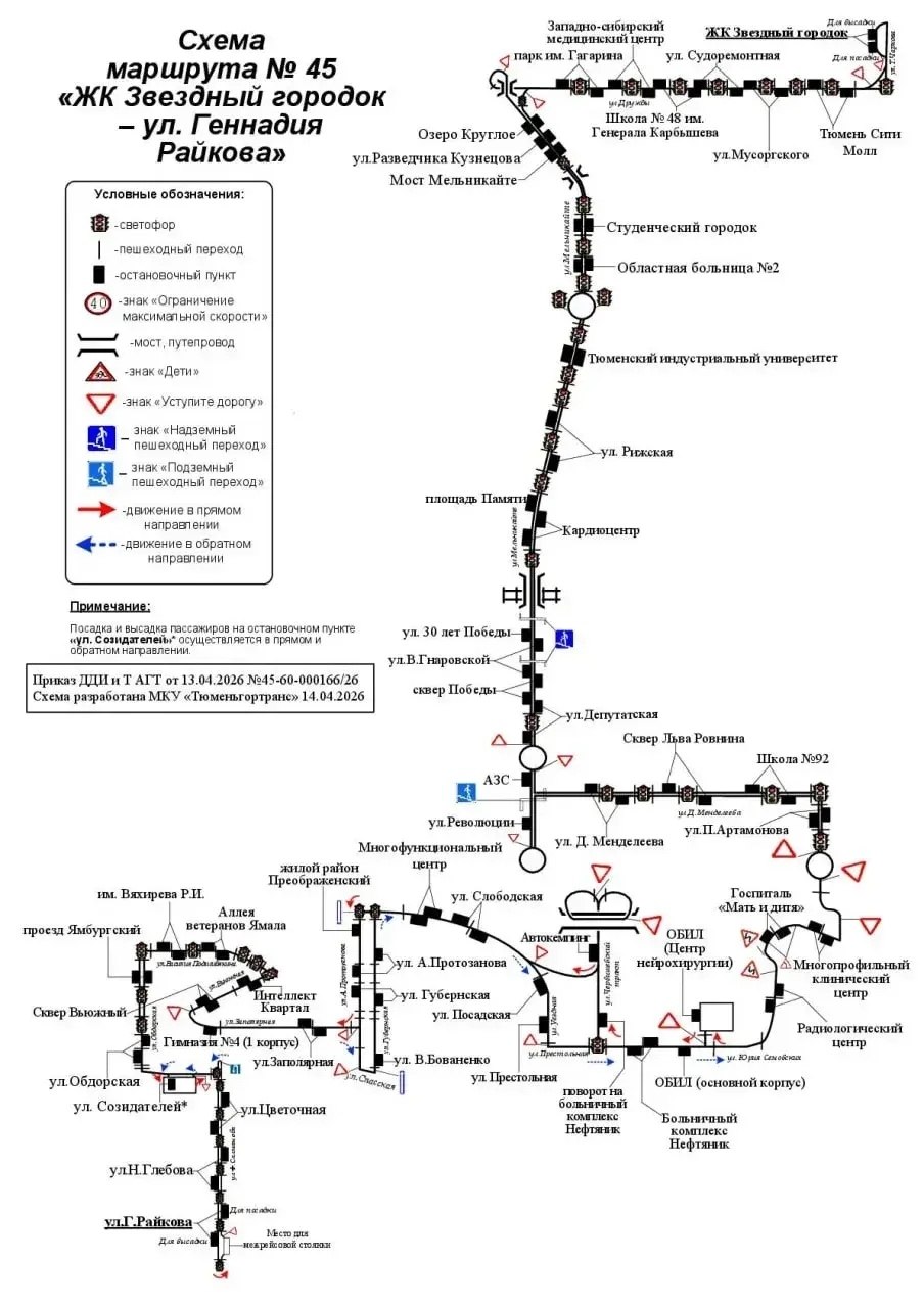 С 1 мая появится остановка «ул. Геннадия Райкова». Из расписания исчезнут остановки: «ул. Посадская», «ул. Престольная» в прямом направлении.