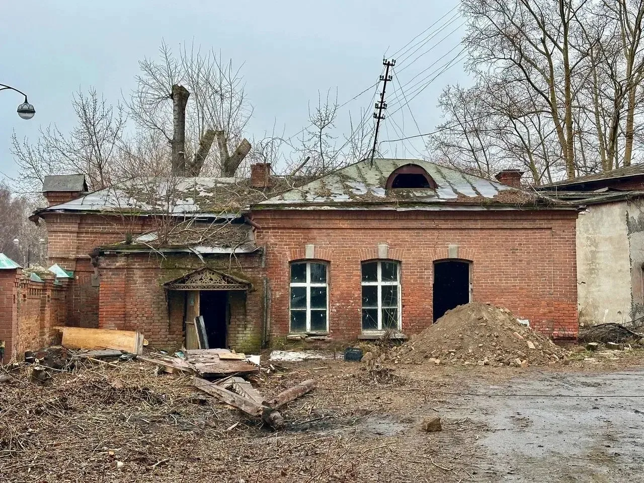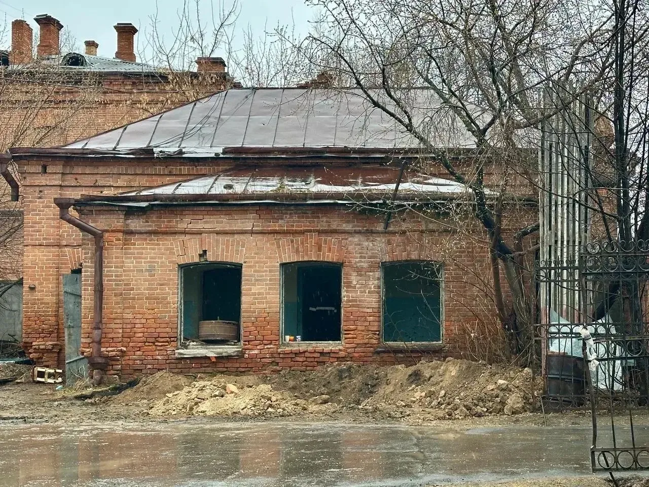А в советское время, здесь работала единственная за Уралом биофабрика. Сейчас идёт сложная, тонкая работа. Восстанавливаем три объекта: ограду и две сторожки. Уже демонтируем то, что не спасти, расшиваем трещины кирпичной кладки, вынимаем грунт.