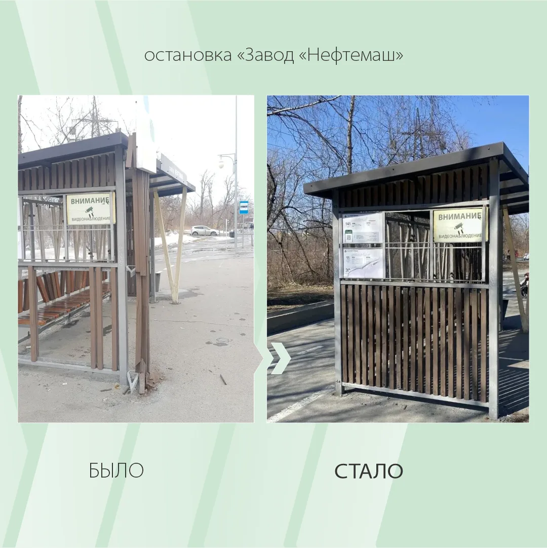 Вячеслав Викторович обратил внимание на поврежденную стенку остановочного павильона «Завод „Нефтемаш“». Благодаря оперативному реагированию департамента дорожной инфраструктуры и транспорта в скором времени проблема была решена.