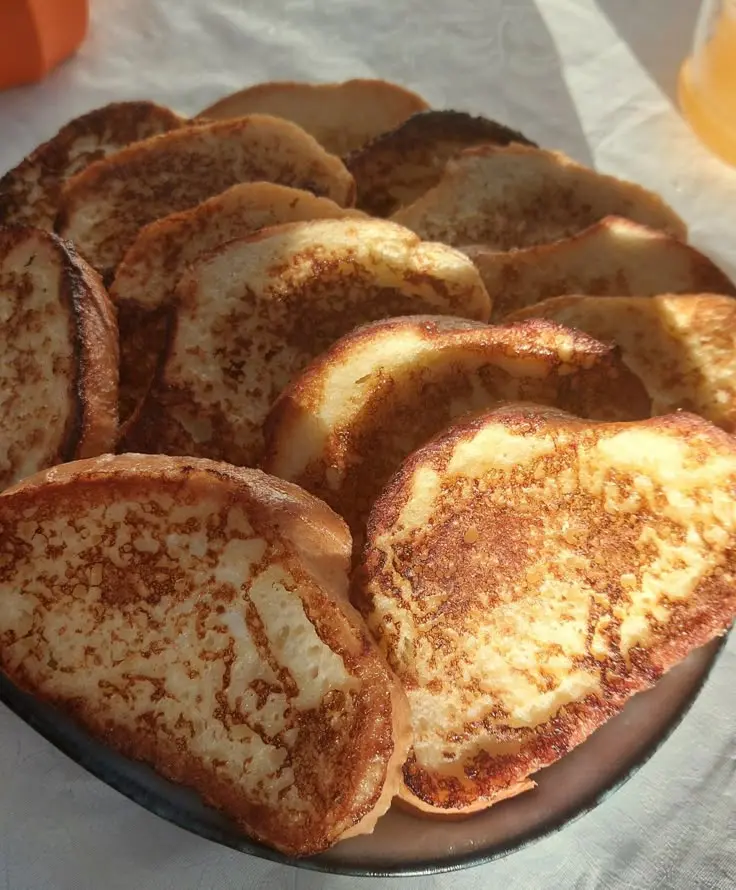 Каждый кусочек хлеба следует хорошенько промочить в полученной смеси, а затем обжарить на растительном масле до золотистой корочки. Для завершения можно присыпать готовые гренки сахаром.