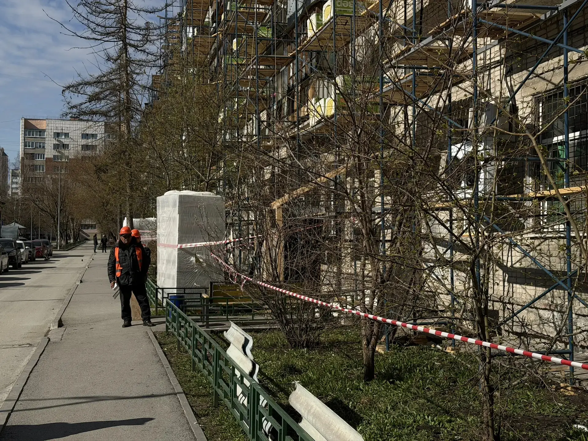 В домах №104 и №112 уже готовят площадки и завозят материалы. Там обновят фасады и крыши.