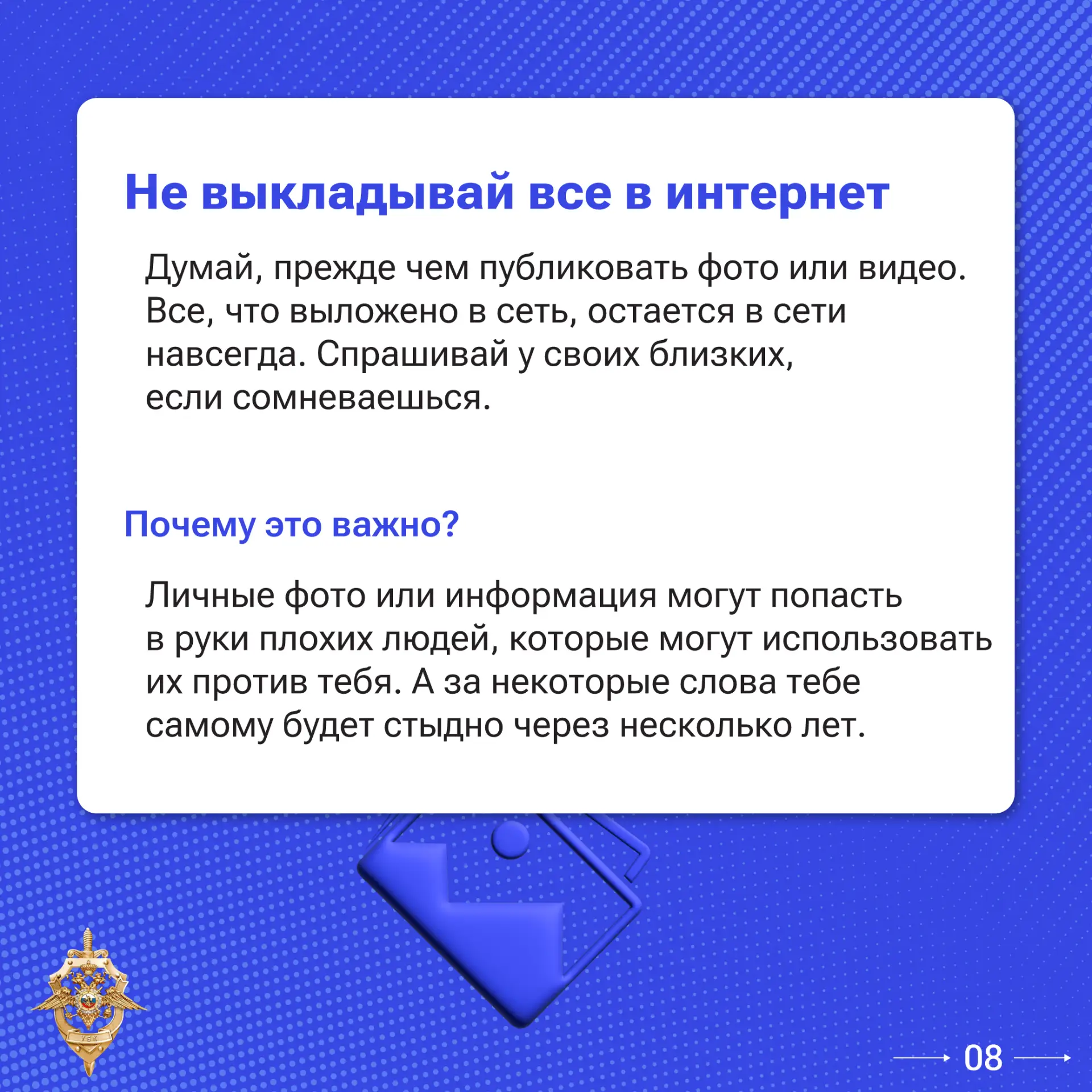В карточках перечислены основные правила кибергигиены. Сохраняйте и делитесь с близкими, чтобы они тоже знали, как обезопасить себя.