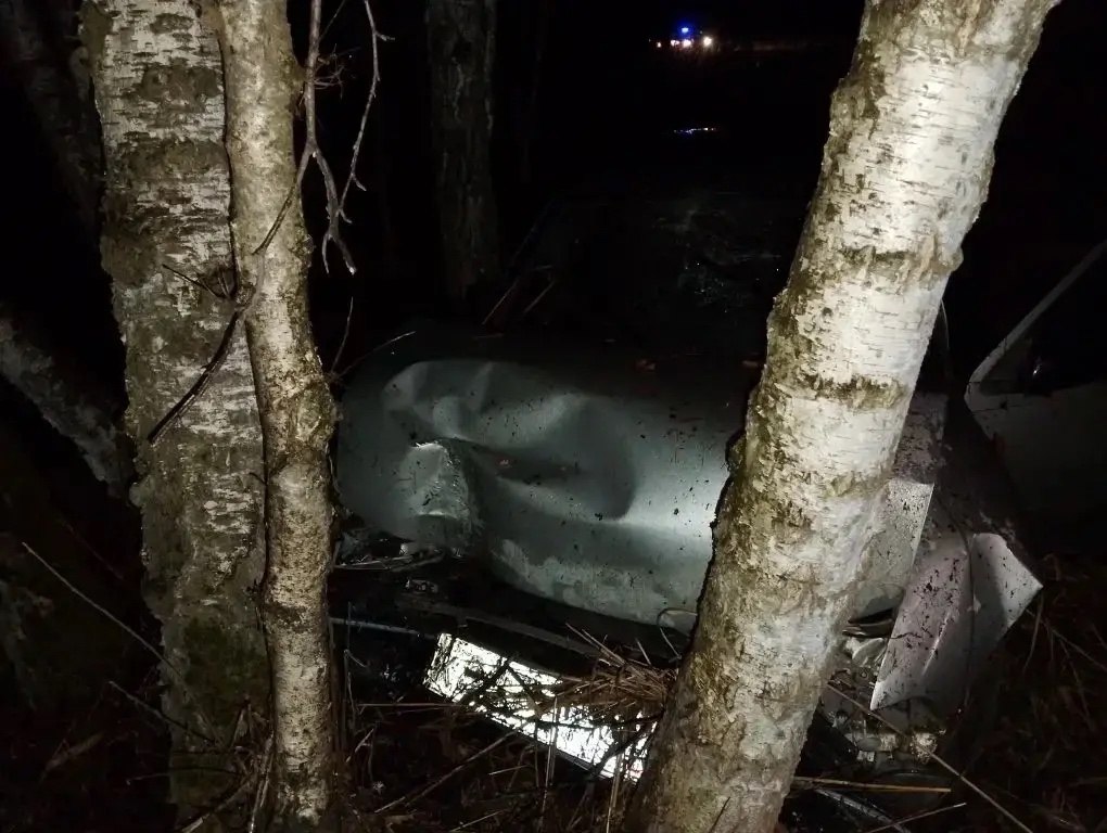 От удара «Дэу» отбросило на деревья, вторая машина скрылась. К сожалению, 60-летний водитель «Дэу» погиб, 34-летняя пассажирка доставлена в больницу.