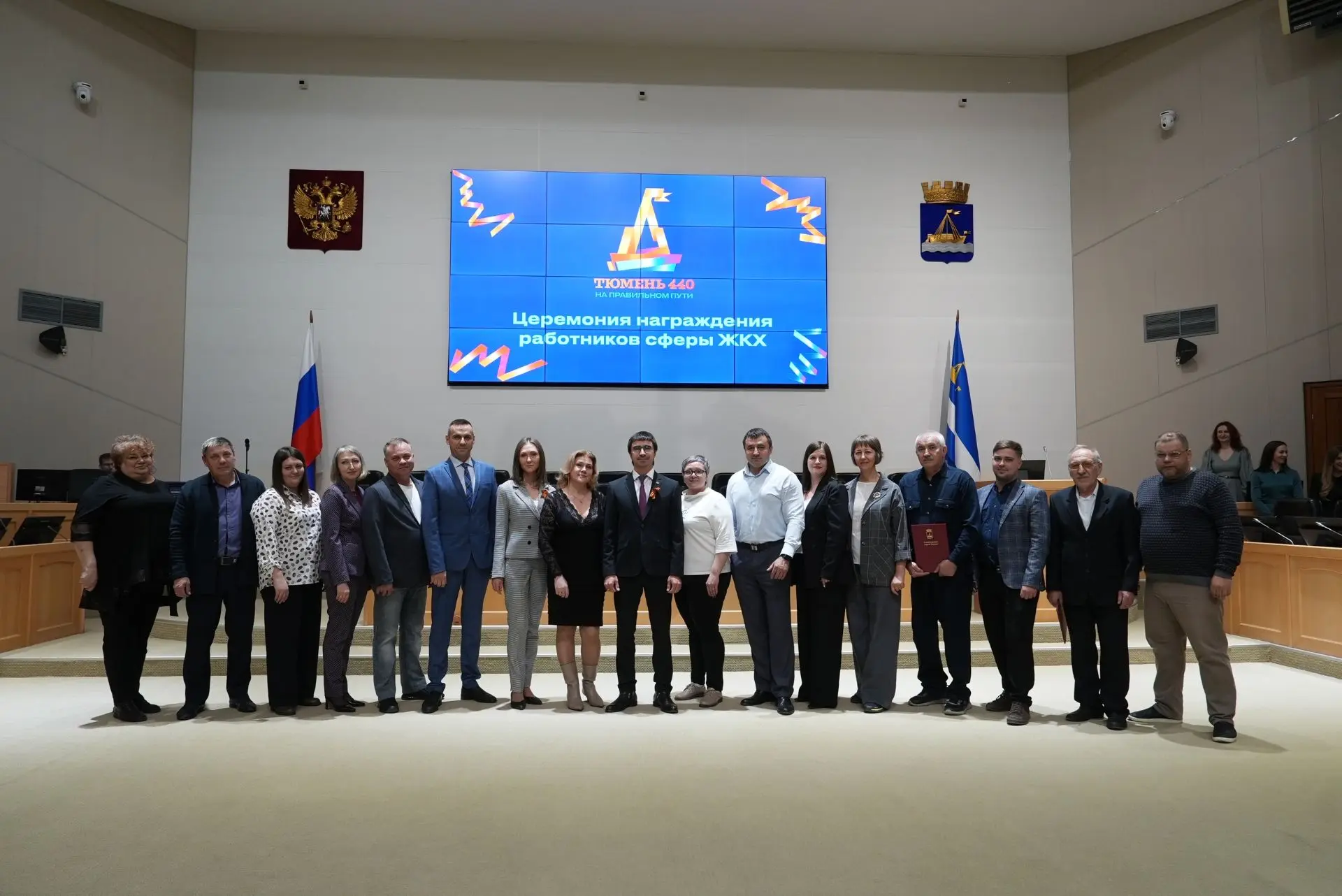 Сегодня в большом зале Администрации Тюмени прошло торжественное награждение работников сферы ЖКХ. Его приурочили к празднованию Дня работников бытового обслуживания населения и жилищно-коммунального хозяйства.