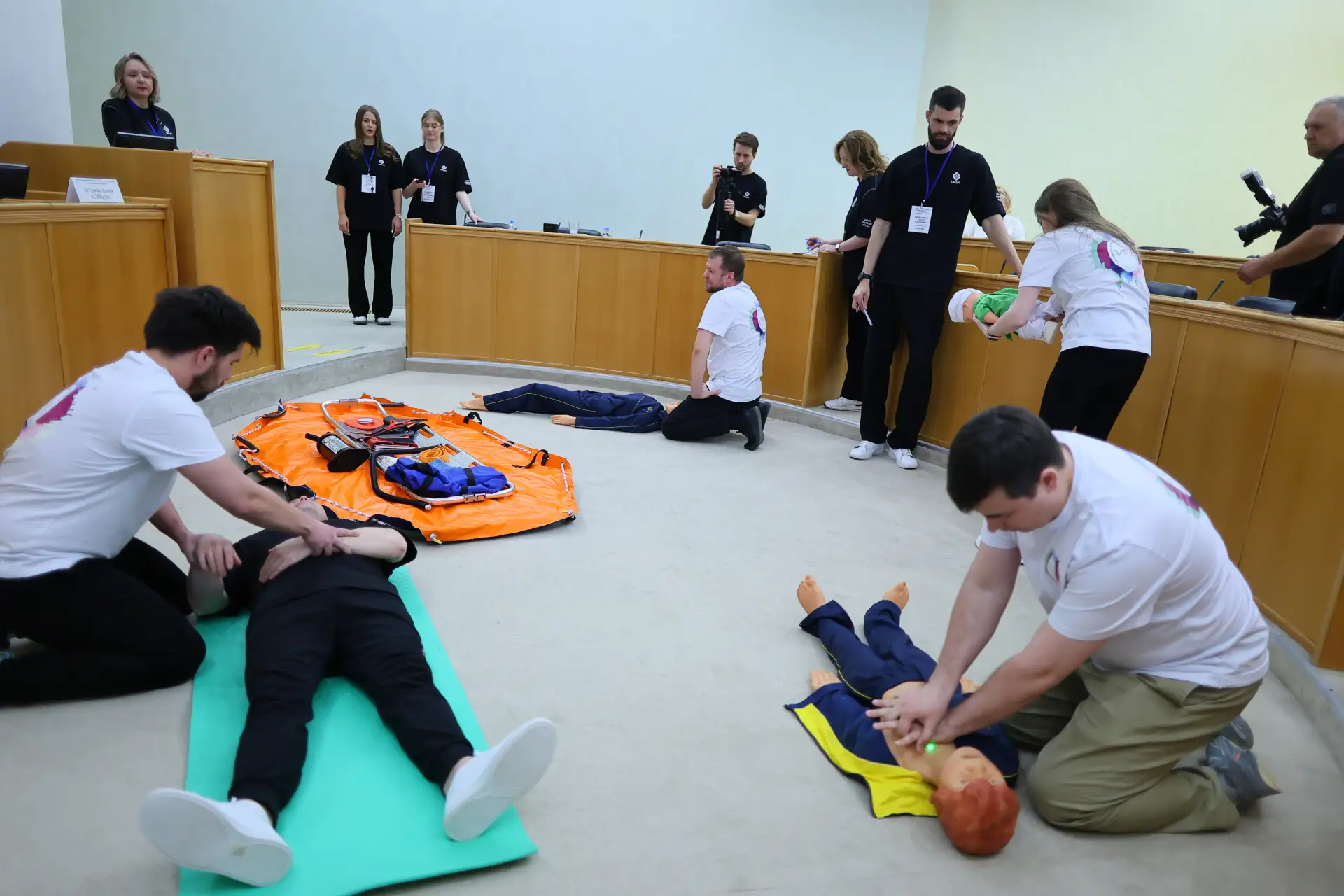 В пятницу в администрации Тюмени прошли вторые городские соревнования по оказанию первой помощи пострадавшему «Умею спасать». По традиции они организованы в канун Всемирного дня охраны труда при поддержке Тюменского межрегионального центра охраны труда (АНО «ТМЦОТ»), Департамента труда и занятости населения Тюменской области и ТМООП «Тюменский облсовпроф». Умение оказывать первую помощь называют не только профессиональным навыком, но и проявлением социальной ответственности. Участников приветствовали директор департамента экономики и стратегического развития администрации города Тюмени Мария Туганова, начальник управления трудовых отношений Департамента труда и занятости населения Тюменской области Ирина Ведрова, председатель Тюменской областной организации Общероссийского профессионального Союза работников государственных учреждений и общественного обслуживания РФ Ирина Быковская, директор АНО «Тюменский межрегиональный центр охраны труда» Галина Поперека и почетный гость — президент Союза строителей Тюменской области, почетный строитель Российской Федерации Андрей Никитин.
