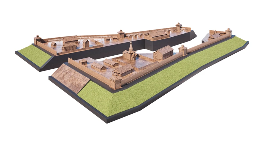 Это будет бронзовый макет «Архитектурный ансамбль Тюменского острога», представляющий детализированную историческую реконструкцию оборонительного сооружения, выполненную в виде объёмно-пространственной композиции. Масштаб – 1:20. Он воссоздает облик Тюменского острога, существовавшего с 1686 по 1700 год.