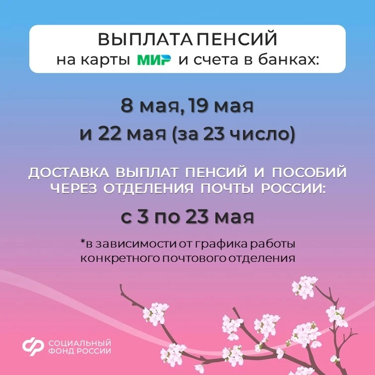 Отделение СФР по Тюменской области опубликовал график выплат детских пособий и пенсий в связи с майскими праздниками