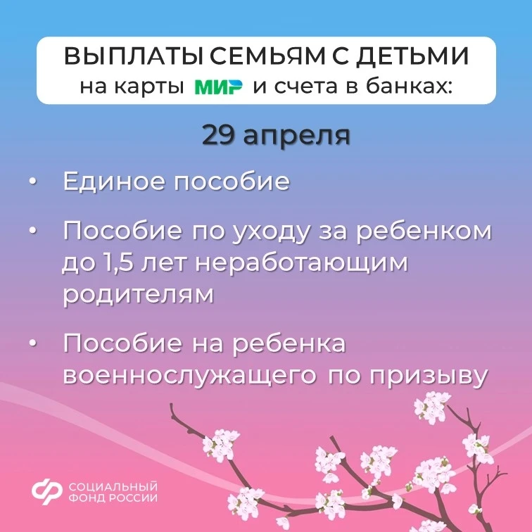 • 29 апреля – детские пособия, которые родители обычно получают 3го числа (подробнее – в карточках);