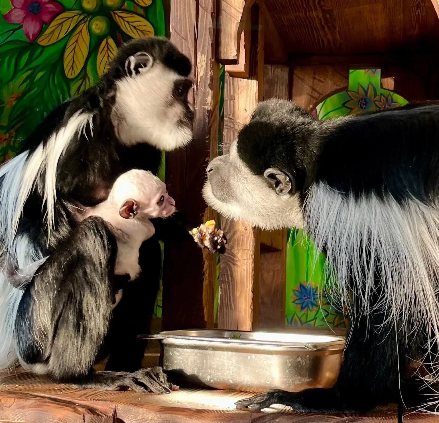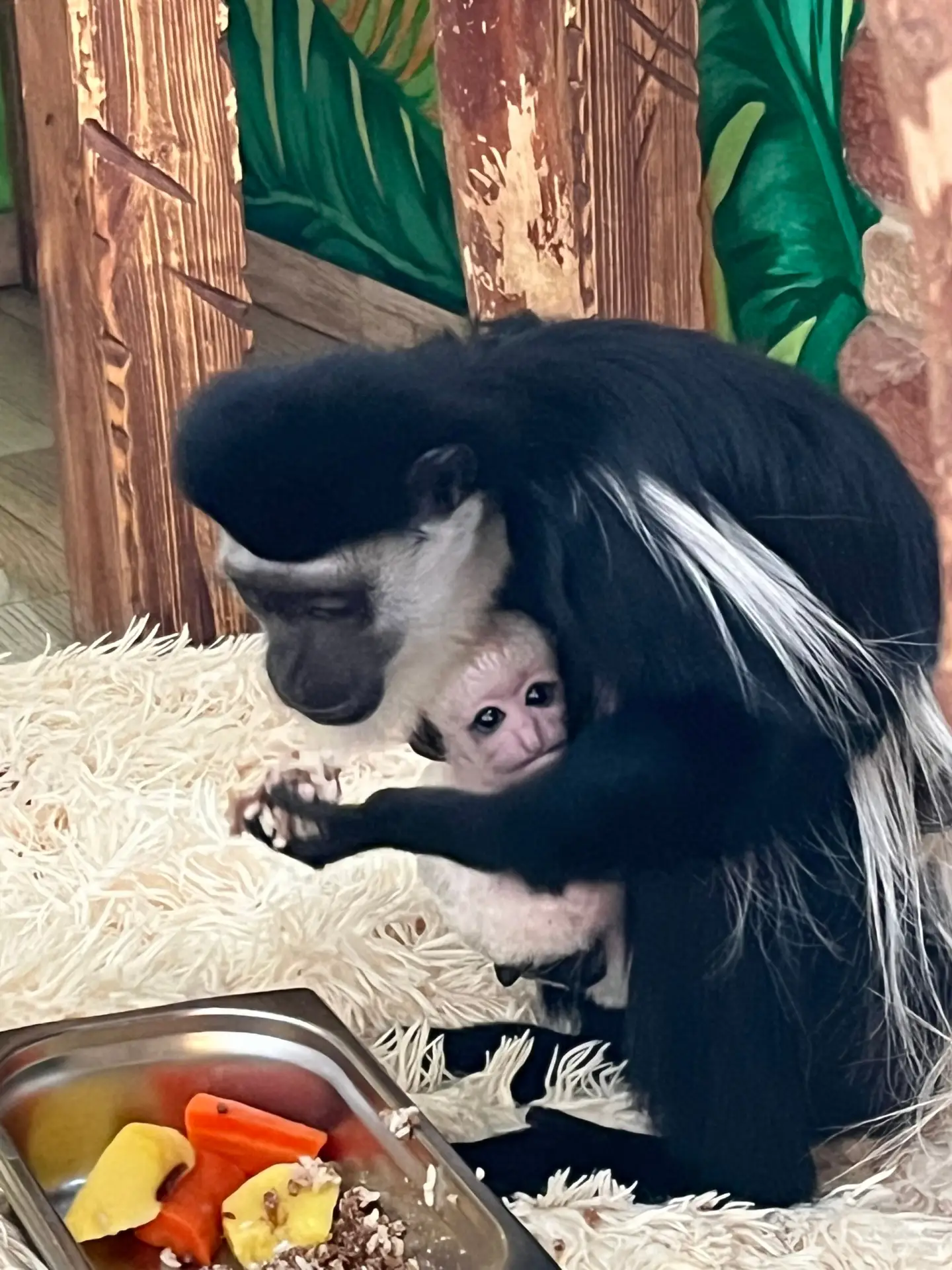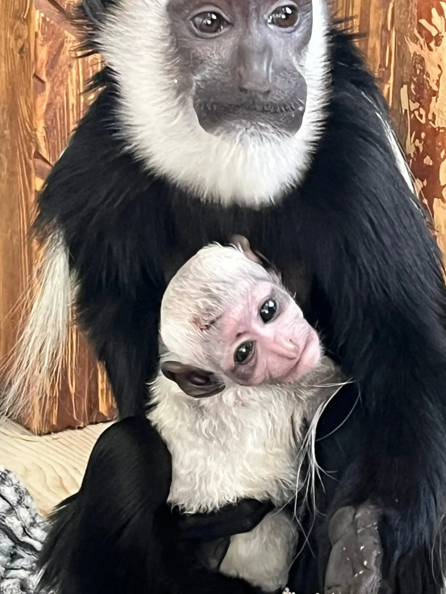 Мия и Коломбо — пара колобусов, которые стали родителями в начале года. Детеныш родился с белым окрасом, из-за чего у отца появились сомнения.