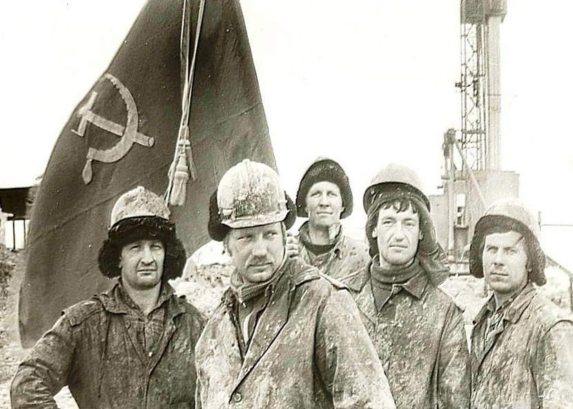 Буровая бригада А. Старовойтова из Холмогорского управления буровых работ №1 ПО ННГ. 1986 год. Фото предоставлено Ноябрьским землячеством