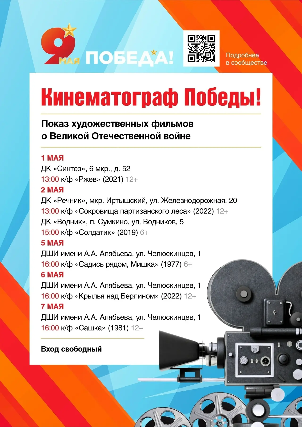 Приглашаем на показы художественных фильмов о Великой Отечественной войне — это возможность вспомнить важные страницы истории через сильные и трогательные киноленты.