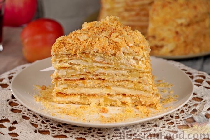 - Торт "Наполеон" с яблоками. Этот изысканный десерт станет настоящей звездой вашего стола. Нежные коржи, пропитанные заварным кремом с добавлением свежих яблок, подарят незабываемый вкус!