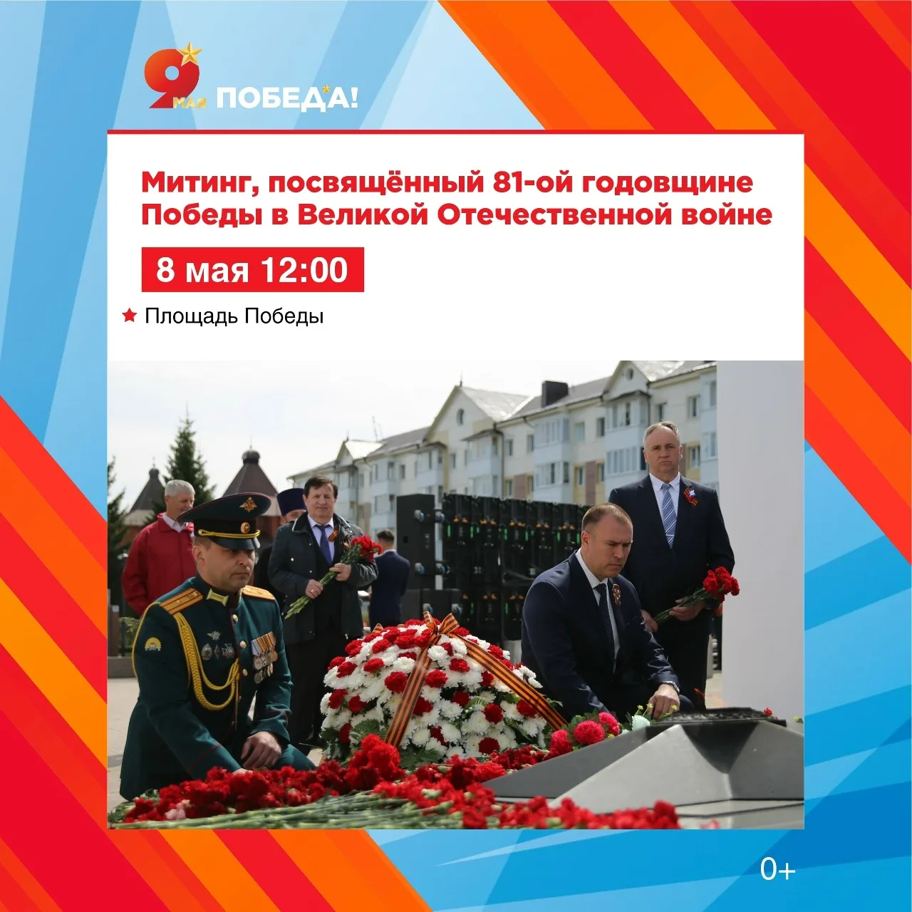 8 мая в 12:00 на Площади Победы состоится митинг, посвящённый 81-й годовщине Победы в Великой Отечественной войне.