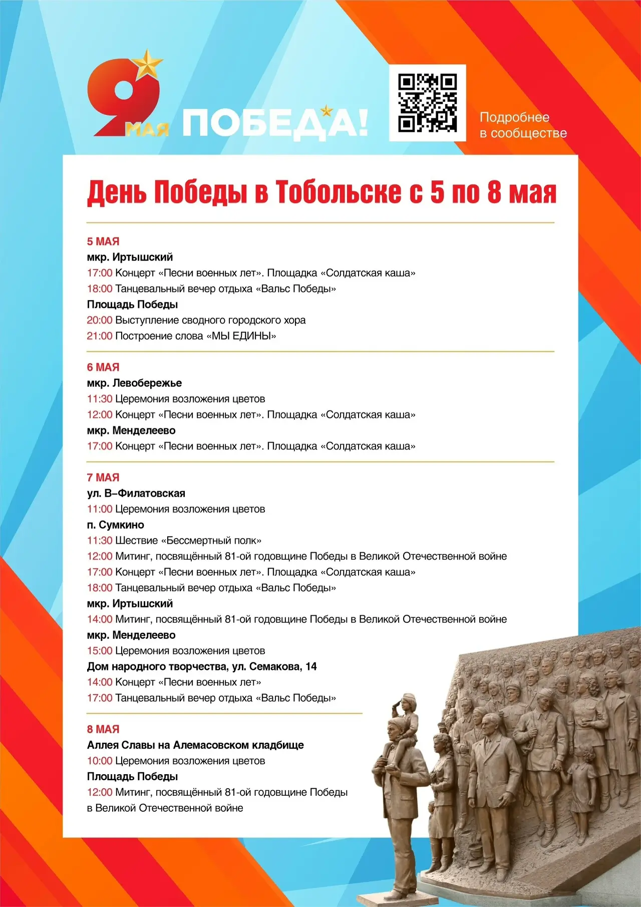 В Тобольске с 5 мая стартует цикл мероприятий, посвящённых 81-й годовщине Победы в Великой Отечественной войне.