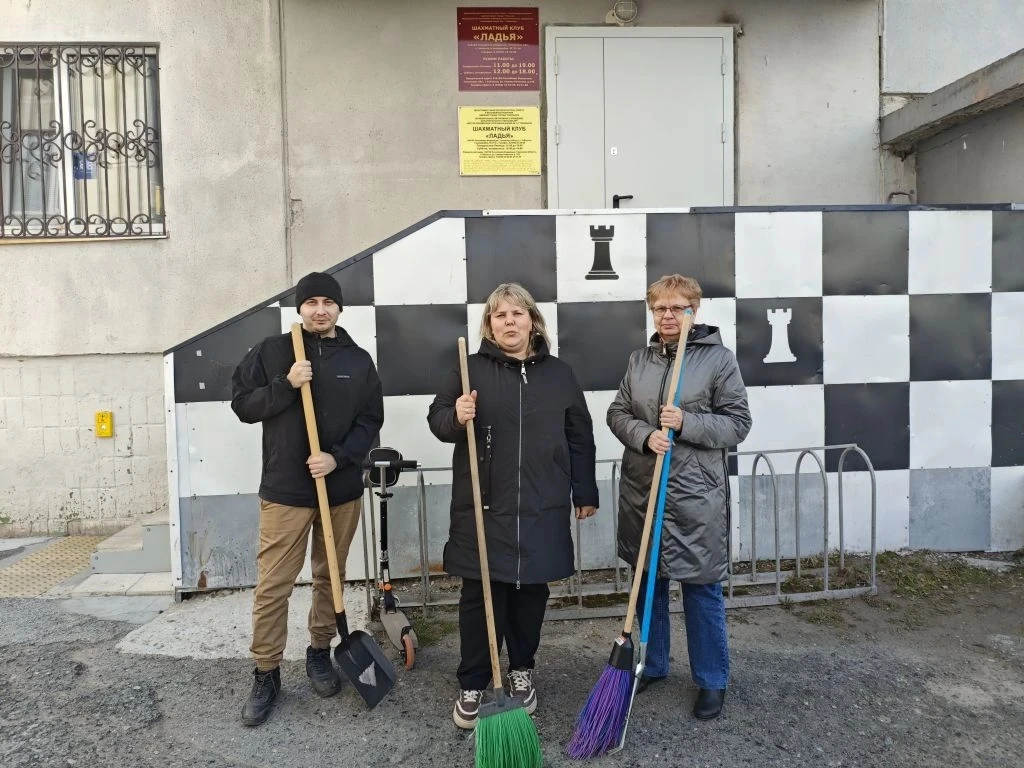 Сотрудники клуба вышли на субботник и навели порядок на прилегающей территории. Листва собрана, дорожки подметены, газоны приведены в порядок — теперь играть в шахматы и проводить турниры будет ещё приятнее в чистом и уютном пространстве.