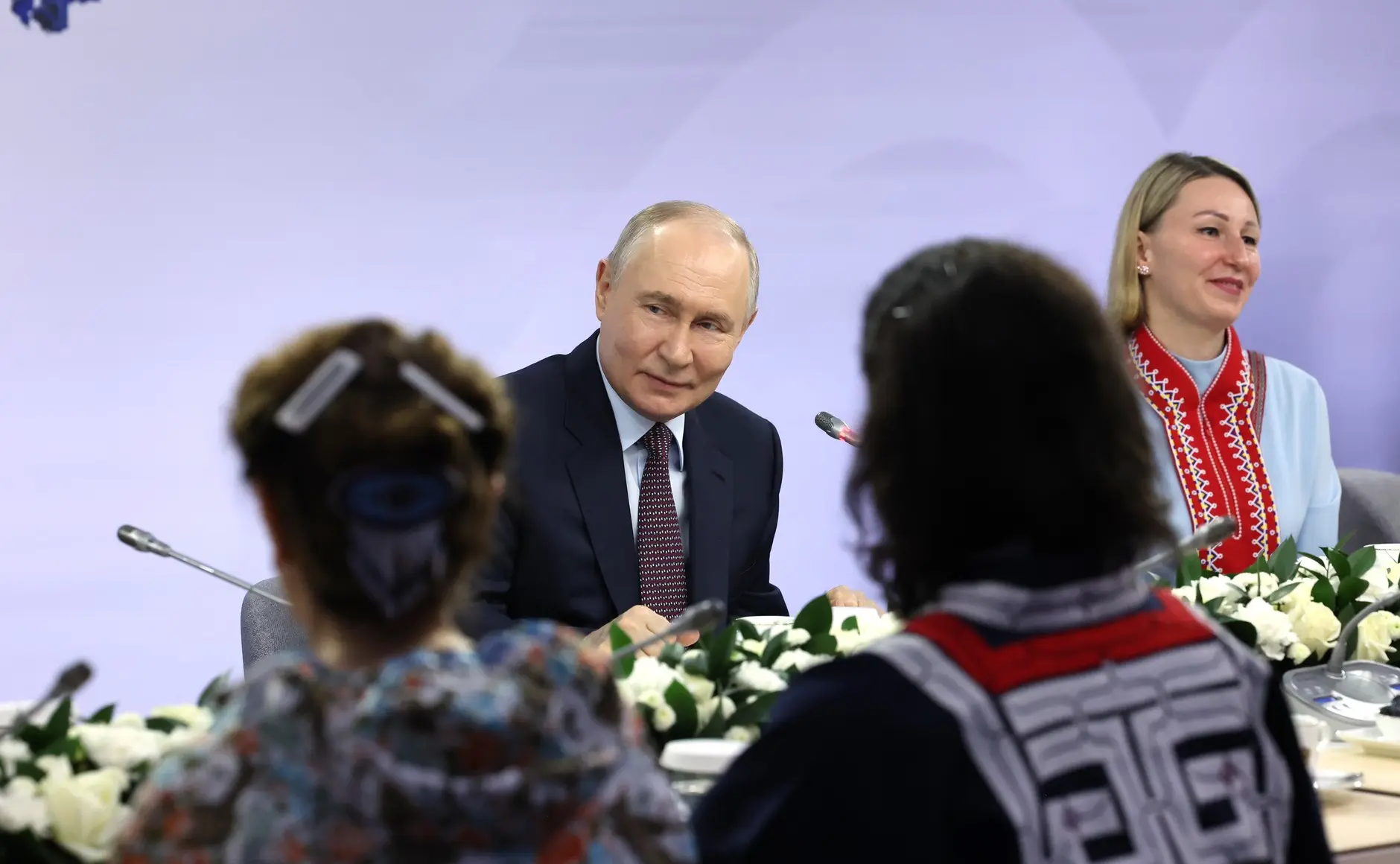 На площадке федерального просветительского марафона "Знание. Первые" Владимир Путин встретился с представителями коренных малочисленных народов России. К Главе государства обратилась 12-летняя Янесса, представительница народа ханты из Ханты-Мансийска.